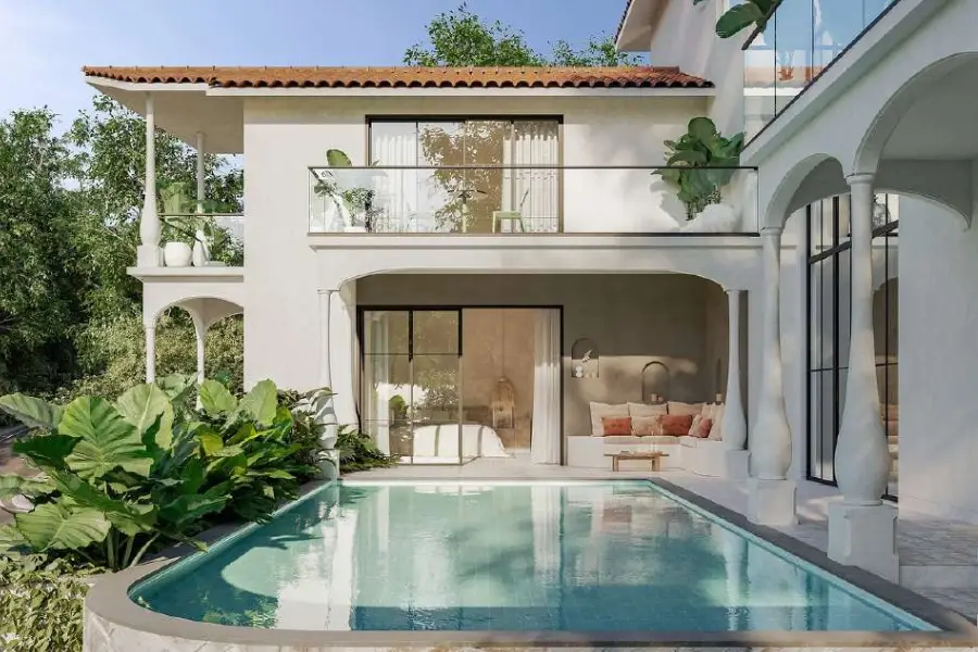 Beyond these doors unfolds your private oasis—a shimmering pool set against a backdrop of emerald foliage and graceful archways. Here, every moment is yours to define: awaken your senses with a sunrise swim, linger poolside with a coffee as the world stirs, or let the day slip into night beneath a canopy of stars reflected in the water. At Villa Aurevia, time bends to your rhythm, and every corner whispers the promise of memories waiting to be made.