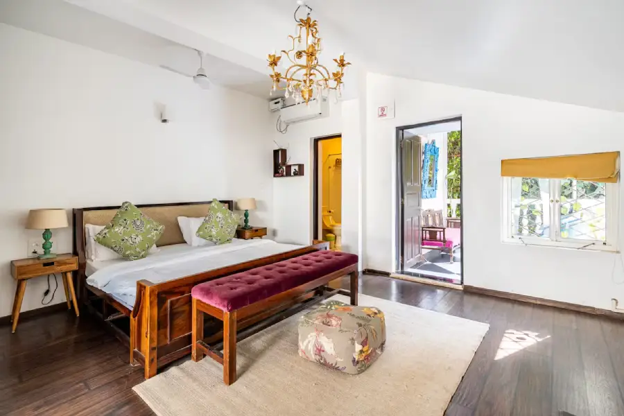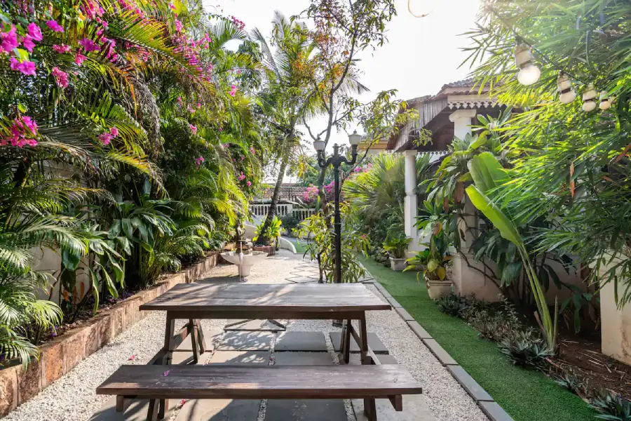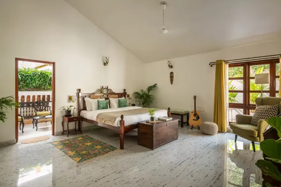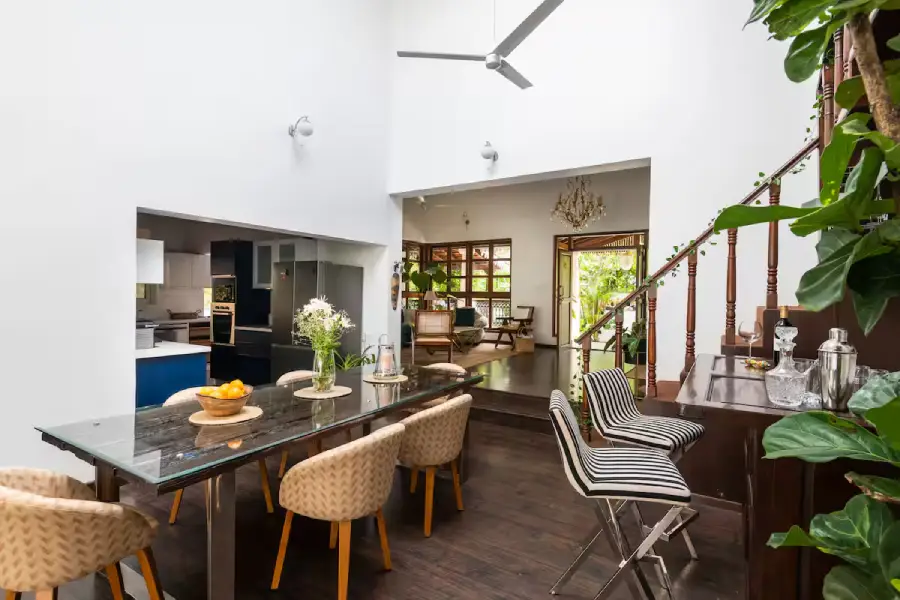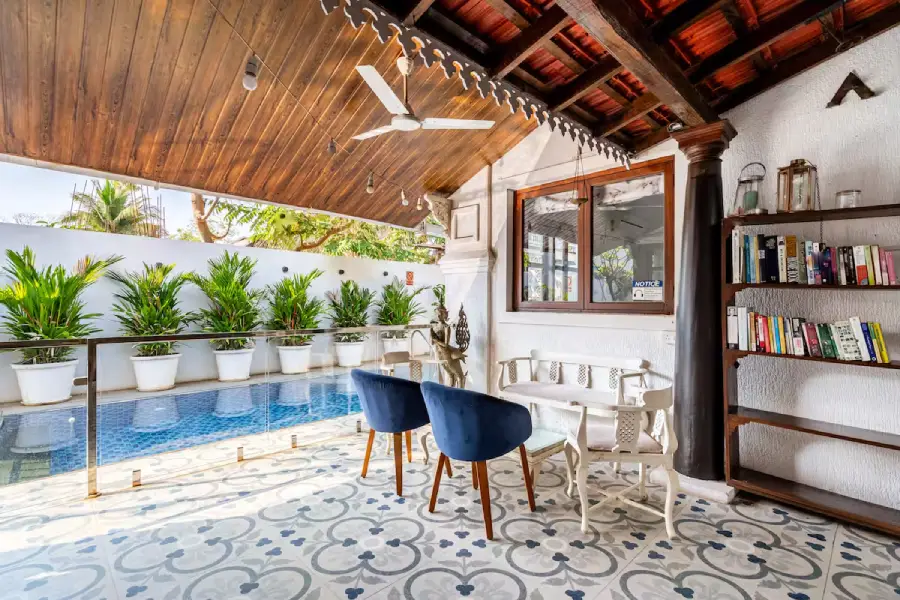 4Positioned in the heart of North Goa’s most desirable landscape, where the sophisticated vibes of Assagaon meet the vibrant spirit of Anjuna, this villa offers an unparalleled retreat. You are welcomed into a haven of tranquility, where a Zen garden with a lotus pond and a graceful Portuguese-style stairway set a tone of refined elegance. This spacious 4 BHK home is conceived as a personal sanctuary, promising an experience where modern luxury and timeless charm coexist in perfect harmony from the moment you arrive.