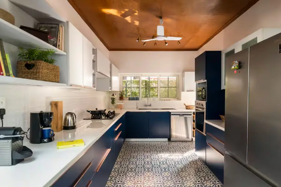 Step inside to discover an interior that is both expansive and bathed in natural light, thanks to an intelligent open-floor plan designed for both relaxation and connection. The living space is highlighted by a breathtaking sunroof over the dining area, illuminating a magnificent dining table hewn from reclaimed wood—a true conversation piece. For those who love to cook, the kitchen is a dream realized; a beautifully appointed, fully-stocked blue masterpiece that invites you to channel your inner chef and create culinary delights with ease.