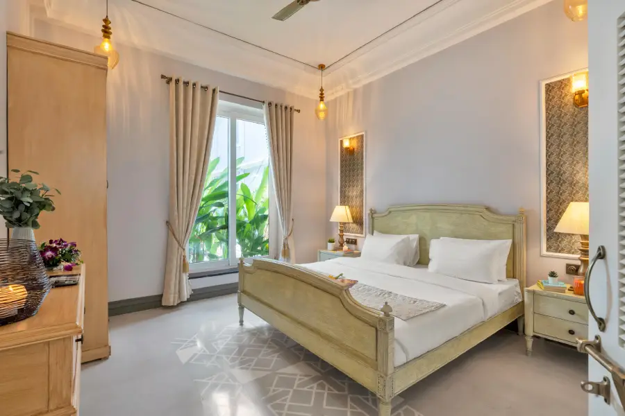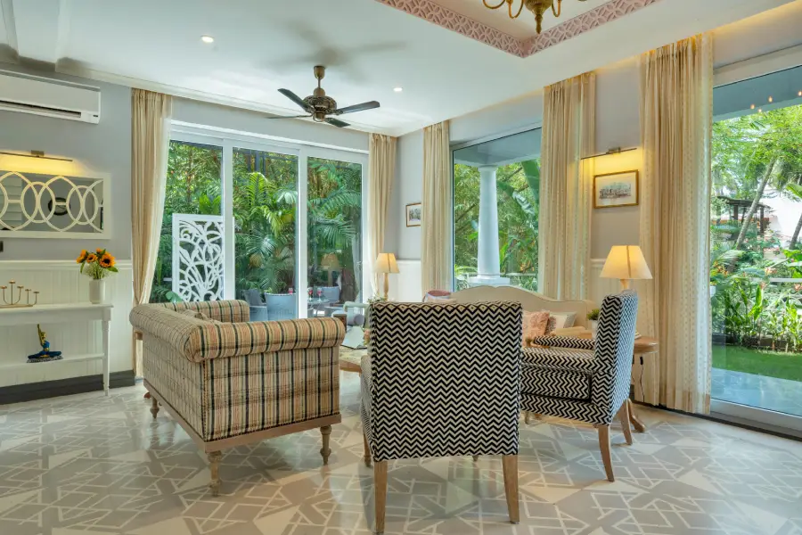 4Welcome to Ziniya Villa – 4BHK, a luxurious private retreat nestled in the serene locality of Saligao, North Goa. Surrounded by lush greenery, this elegant villa offers the perfect blend of comfort, privacy, and convenience. Featuring a private swimming pool, spacious interiors, and stylish furnishings, Ziniya Villa is ideal for families and groups seeking a relaxed yet upscale Goan getaway. Centrally located, the villa provides easy access to popular beaches such as Baga, Anjuna, Calangute, and Candolim, as well as nearby markets, restaurants, and key landmarks—making it an excellent base to explore North Goa.